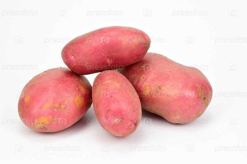 Небольшая кучка красного картофеля, изолированная на белом фоне