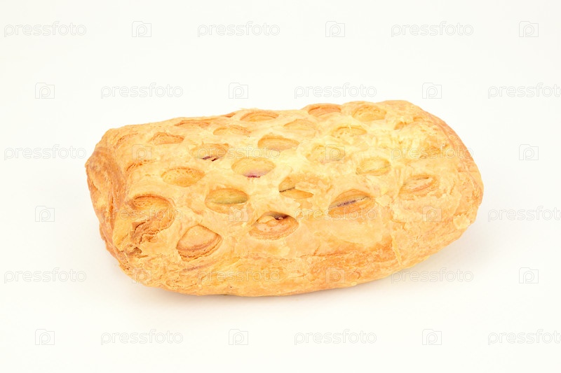 Домашнее слоеное тесто с начинкой из брусники, изолированное на белом фоне