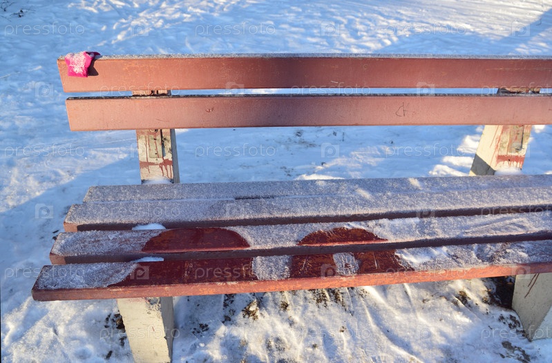 Следы, оставленные сидящими людьми на замерзшей скамейке
