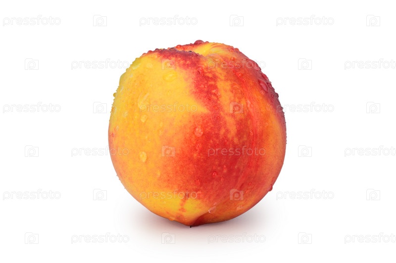 Красно-желтый спелый нектарин в капельках воды с легкой тенью снизу