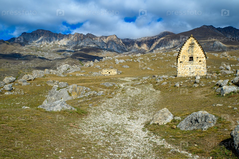 Заброшенная старая деревня высоко в горах