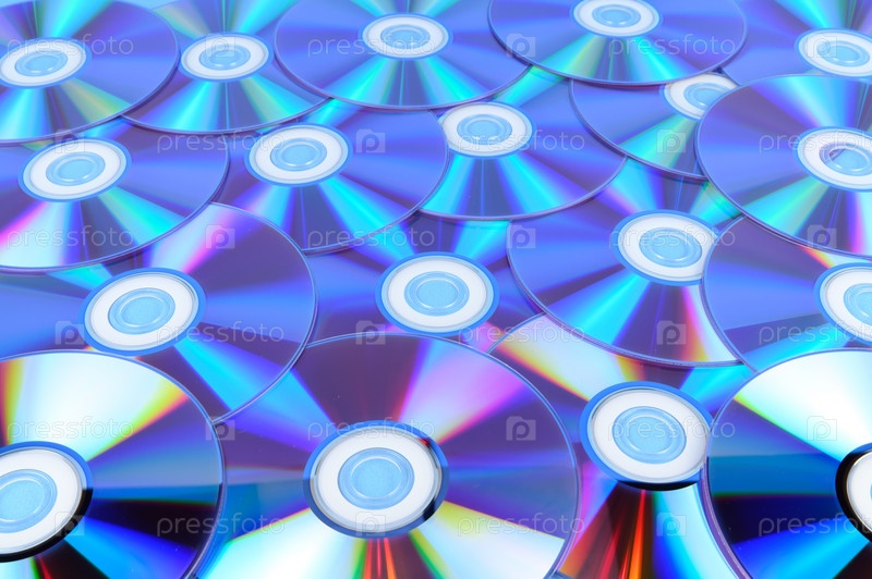 Несколько компакт-дисков разложены на горизонтальной поверхности