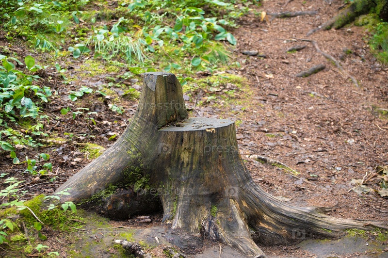 Толстый пень, отпиленный в форме кресла
