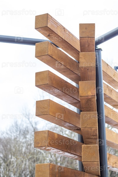 Большие деревянные бревна, сложенные вместе как декоративный элемент
