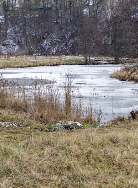 Снимок замерзшей зимней реки. Природа