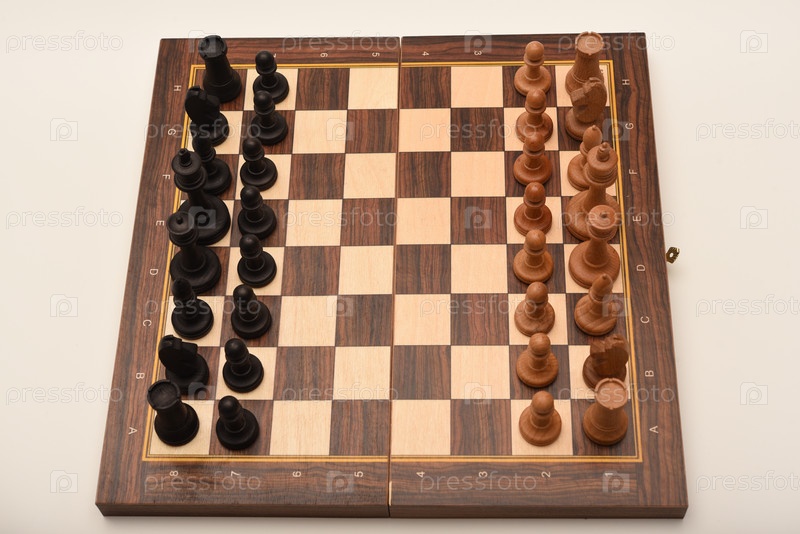 Черно-белые шахматы. Деревянные шахматы на доске. Шахматная игра
