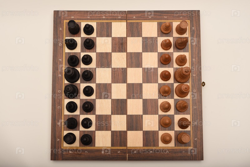 Черно-белые шахматы. Деревянные шахматы на доске. Шахматная игра