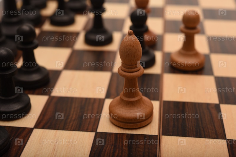 Черно-белые шахматы. Деревянные шахматы на доске. Шахматная игра