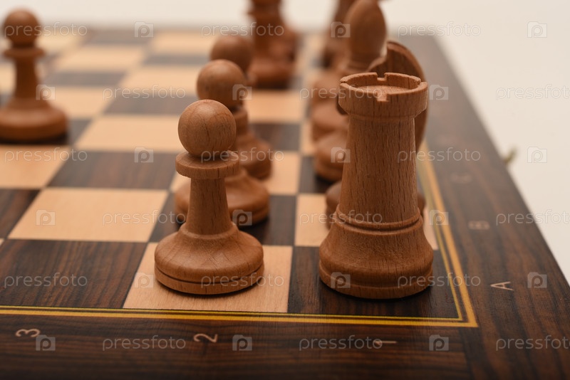 Черно-белые шахматы. Деревянные шахматы на доске. Шахматная игра