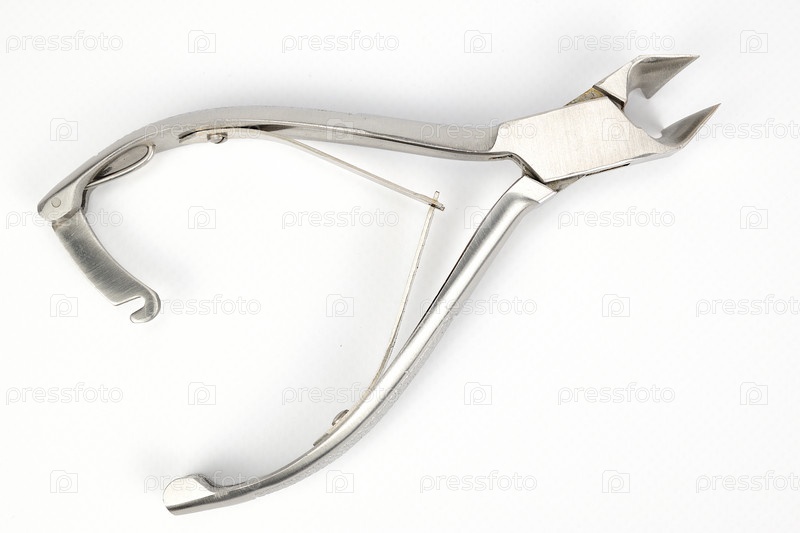 Вид сверху педикюрных щипцов, изолированных на белом фоне