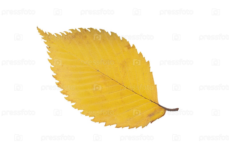 Осенний желтый высушенный лист вяза с темными прожилками