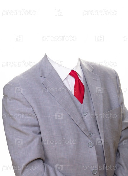 Деловой серый классический костюм без головы, изолированный на белом фоне