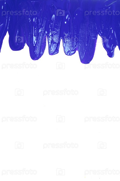 На белом фоне — синие переливающиеся пятна текучей акриловой краски