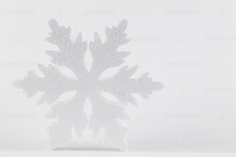 Праздничный светлый рождественский фон. Большая белая снежинка на сером фоне