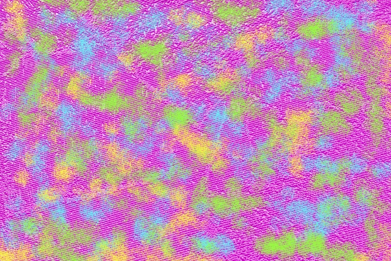 На бумажных розовых обоях неровные пятна краски неоновых ярких цветов