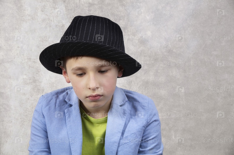 Грустный мальчик в костюме и черной шляпе