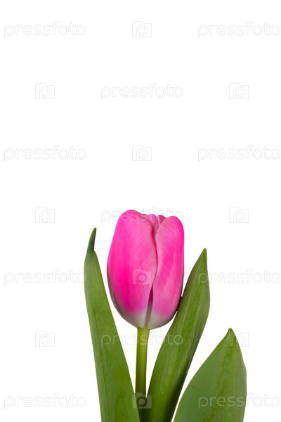 Розовый тюльпан на белом фоне