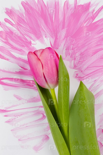 Розовый тюльпан на акварельном фоне. Концепция цветочного творчества
