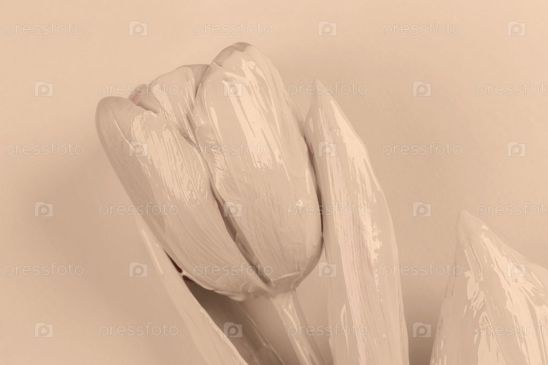 Бежевый тюльпан, покрытый акриловой краской на бежевом фоне. Креативная концепция ухода за кожей, крем