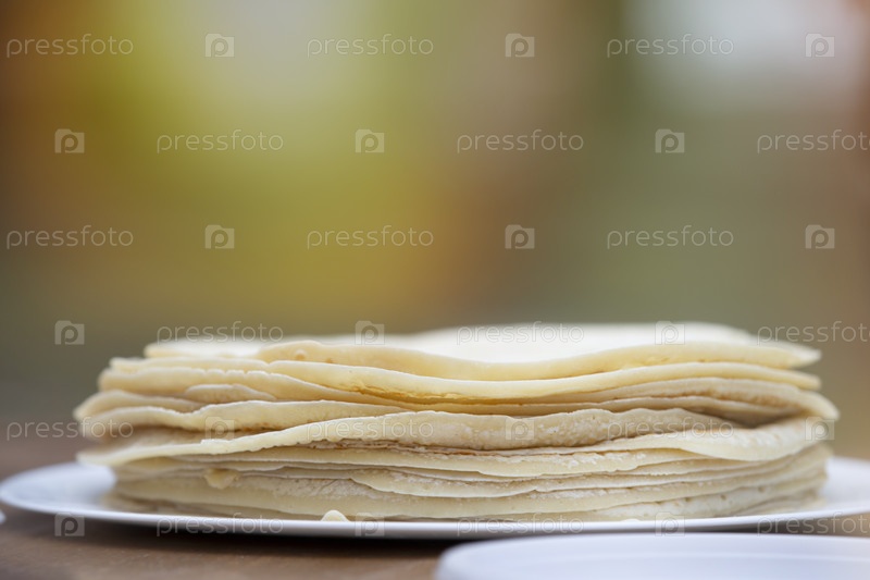 Тонкие блины, сложенные стопкой на тарелке
