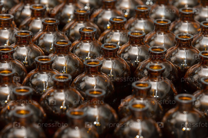 Стеклянные бутылки на заводе по производству медицинских и ветеринарных препаратов