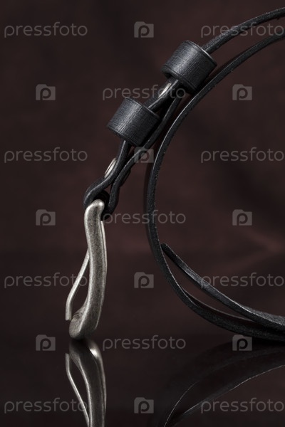 Черный кожаный ремень на темном фоне. Изделия из кожи