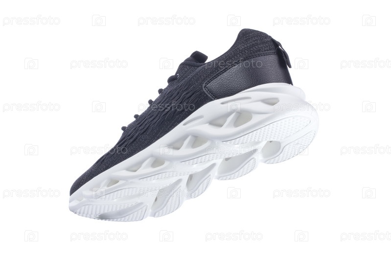 Черные кроссовки из ткани с белой подошвой на белой туфле