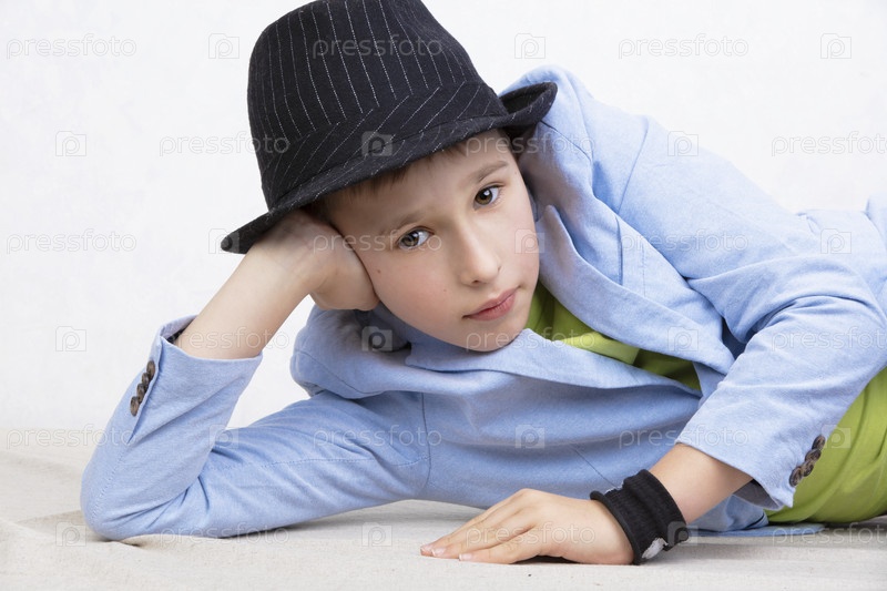 Симпатичный мальчик в куртке и черной шляпе смотрит в камеру