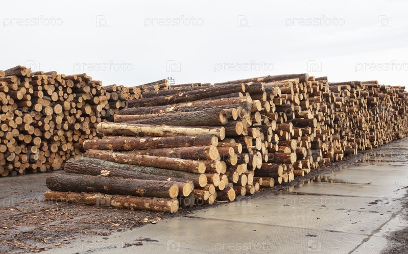 Деревянные бревна на деревообрабатывающем заводе. Натуральная деревообрабатывающая промышленность. Продажа пиломатериалов и бревен