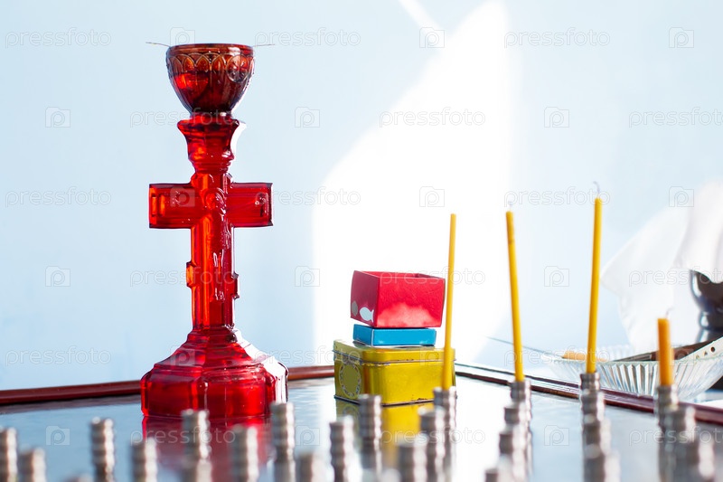 Церковная лампада в виде креста, стекло красное