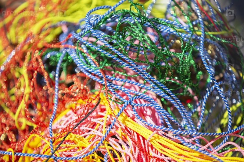 Разноцветные красочные веревки и шнурки. Фон из веревок