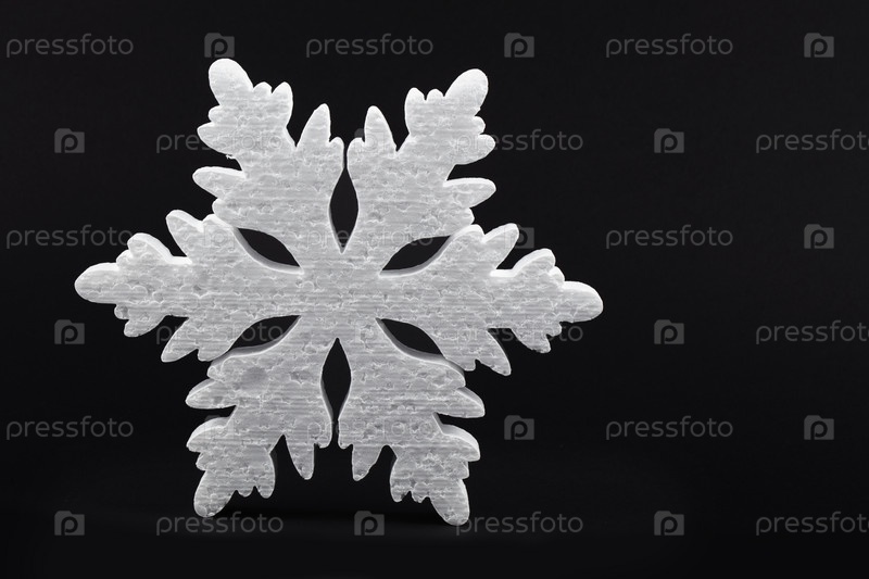 Праздничный рождественский фон. Черный фон, большая белая снежинка