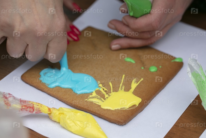 Рисунки от руки на имбирных пряниках, покрытых кремовой глазурью