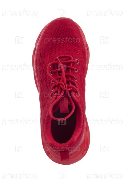 Красные кроссовки из ткани на белом фоне. Спортивная обувь