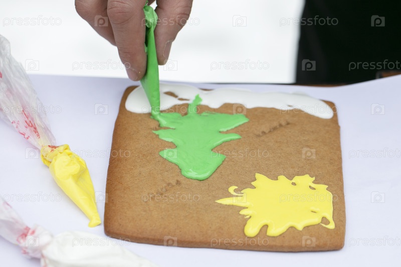 Рисуем рождественскую елку на прянике с кремовой глазурью