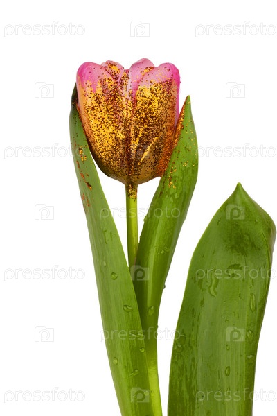 Красивый цветок, покрытый золотой краской на белом фоне. Золотой тюльпан изолирован