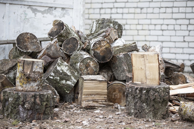 Березовые дрова сложены в большую кучу