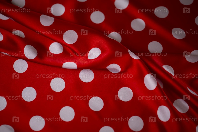 Красная шелковая ткань с крупным белым горошком. Фон в горошек