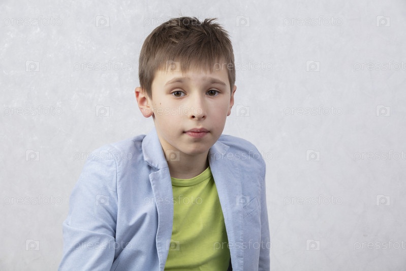 Портрет мальчика среднего школьного возраста в куртке. Ребенку десять лет