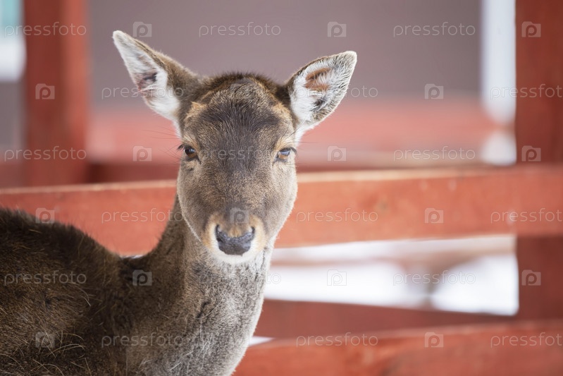 Крупный план морды детеныша европейского оленя без рогов