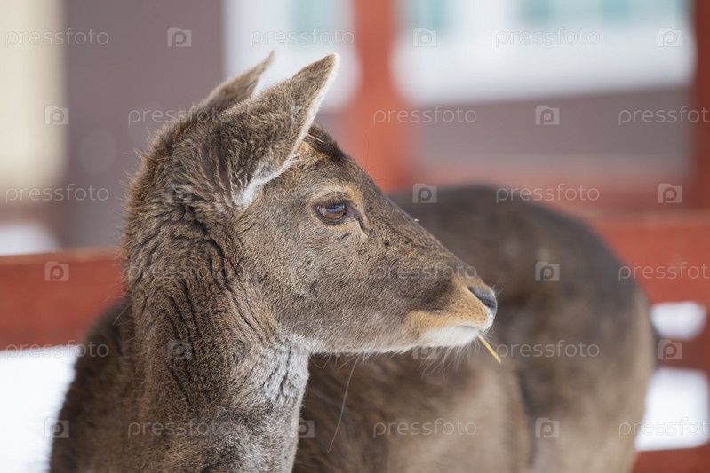 Крупный план морды детеныша европейского оленя без рогов