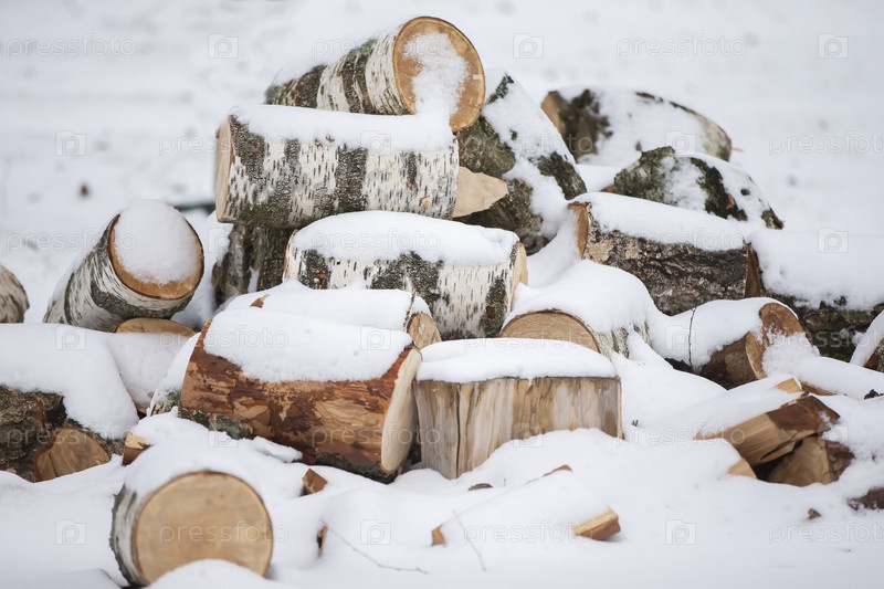 Дрова из березы, покрытые снегом
