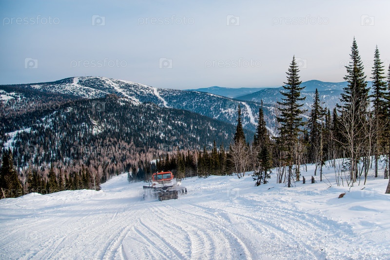 Пейзаж заснеженных гор, горный хребет в дымке зимой