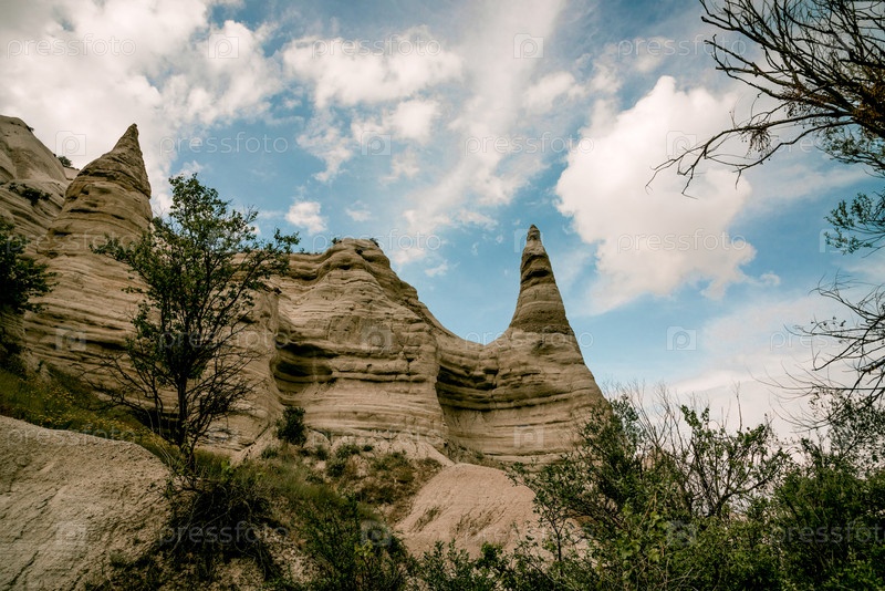 Пейзаж заснеженных гор, горный хребет в дымке летом