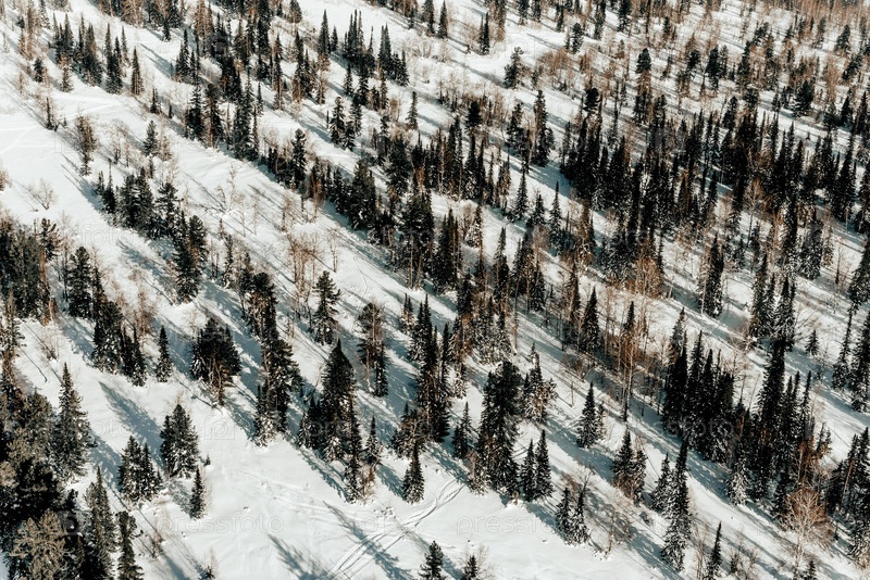 Пейзаж заснеженных гор, горный хребет в дымке зимой
