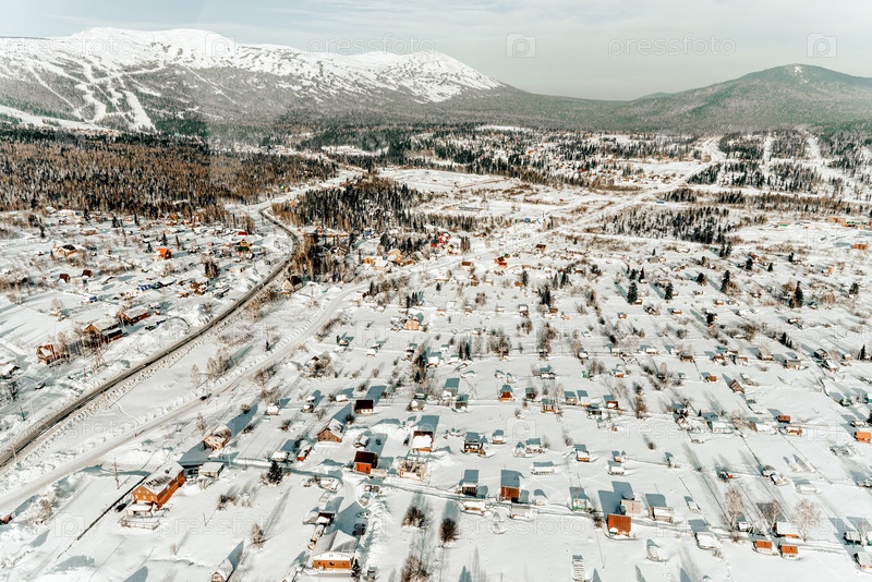 Пейзаж заснеженных гор, горный хребет в дымке зимой