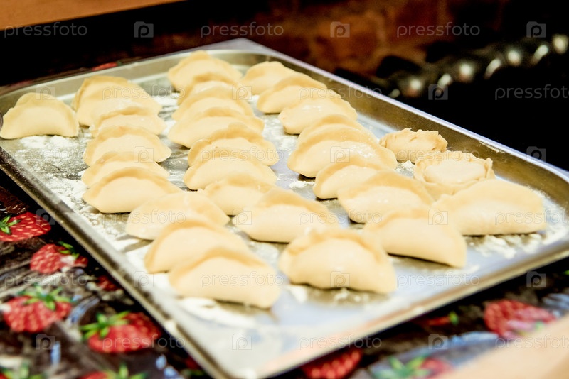 Шеф-повар на кухне ресторана готовит пельмени, блюдо из теста, мясо, приготовленное в кастрюле
