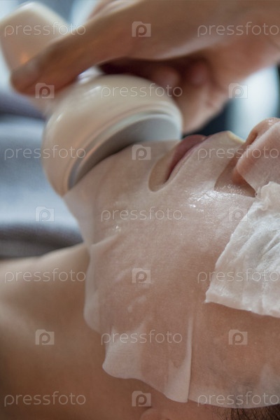 Женщина лежит на кушетке у косметолога, антивозрастная косметическая процедура для лица