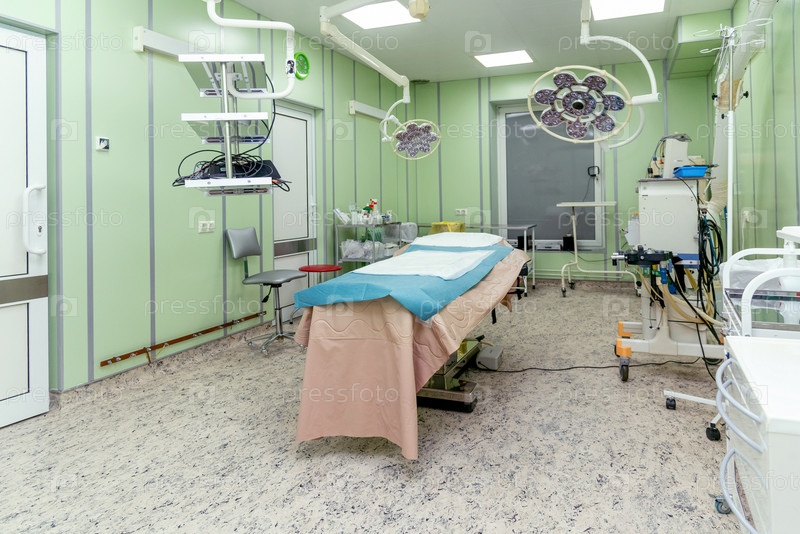 Интерьер хирургической операционной в больнице, светлая комната с медицинским оборудованием