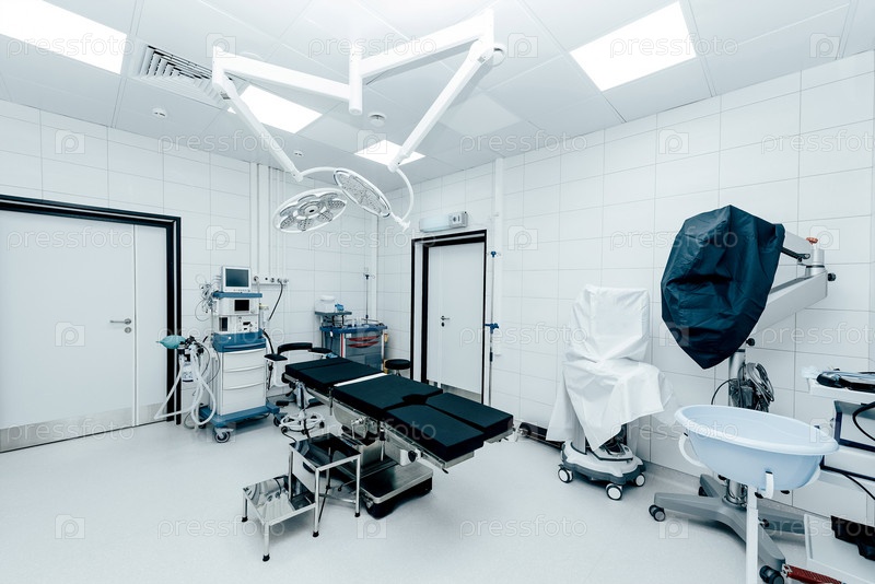 Интерьер хирургической операционной в больнице, светлая комната с медицинским оборудованием